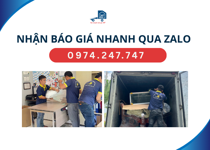 - Bước 1: Tiếp nhận yêu cầu. Khách hàng liên hệ hotline/Zalo 0974.247.747, cung cấp địa chỉ và thời gian cần chuyển nhà.